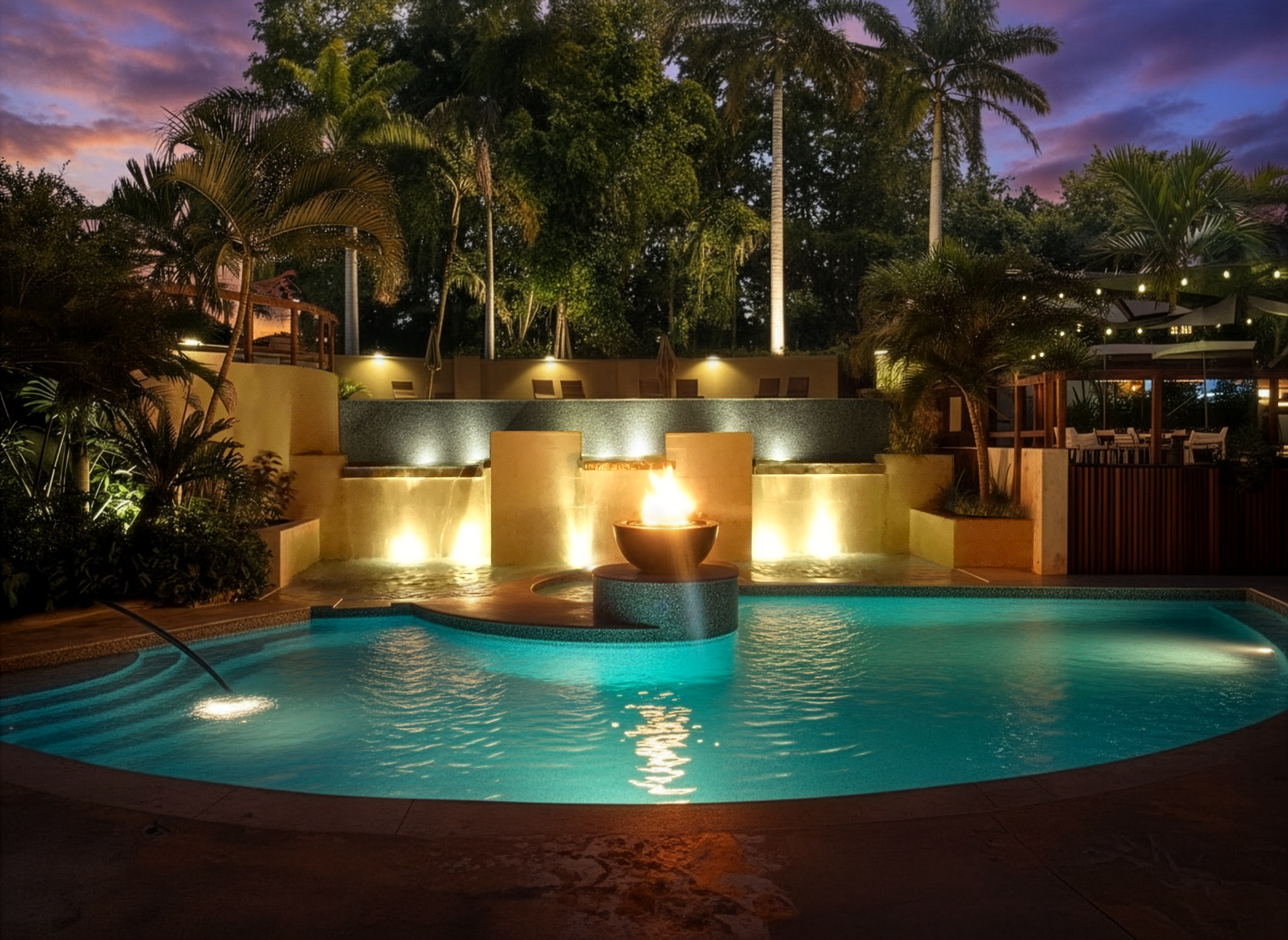 Outdoor real estate re-designed to generate revenue. Wedding venues, rental cabanas, poolside dining, and spa treatment areas positioned where terrain, access, and guest desire converge.